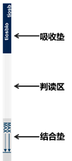 1.?根據檢測樣品數量取出相應數量的試紙條,并在吸收墊(圖1)上做好標記。每根試紙條只能用于單次,DNA探針和RNA探針同時切割的產物檢測。酶切產物體積為50~100μL時,可直接在200μL PCR反應管中檢測核酸產物,產物體積不足50μL時,需在PCR管內加超純水補足體積至50μL,吸打混勻后,才能進行檢測。