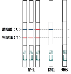 3. 質(zhì)控線(C線)顯色后10min內(nèi)觀察結(jié)果,10min后判讀無效。