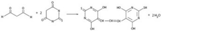 丙二醛在較高溫度及酸性環境中可與TBA發生反應,形成紅色的MDA-TBA加合物,相應的反應原理圖如下: