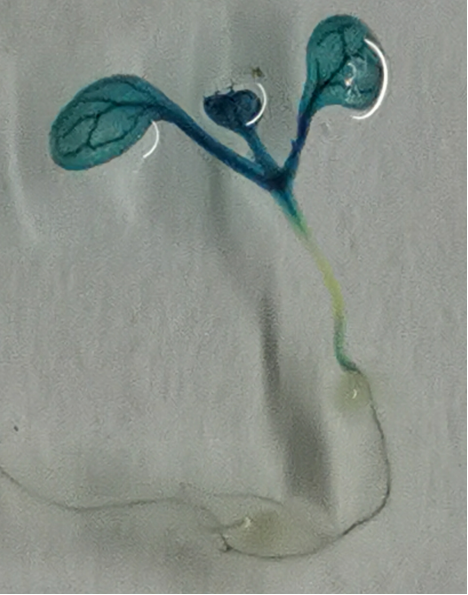 2.染色:加入適量配制好的GUS染色工作液至完全覆蓋材料;錫箔紙包好后搖床搖動10分鐘或更長時間至材料出現藍色。注意要做陰性和陽性對照實驗。