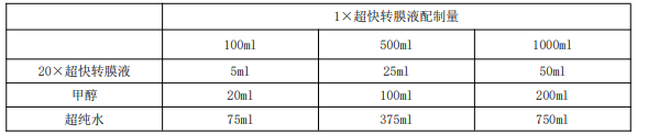 一、半干轉(Semi-dry blot)1、按照下表配制1×超快轉膜液