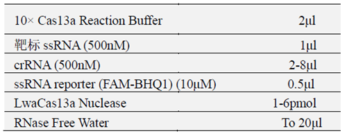 注:Cas13a切割靶標ssRNA需要特定5’-A/U/C-3’的PFS(protospacer flanking sequence)。