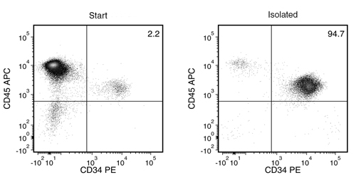 圖1. 第二代EasySep?人CD34造血干/祖細(xì)胞分選試劑盒分選流式圖