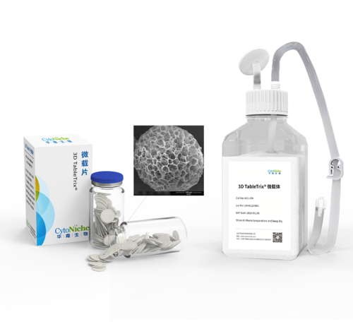 3D TableTrix? 微載體為自主研發產品,由數萬顆彈性三維多孔微載體組成,孔隙率>90%,粒徑大小可控于50-500μm區間, 均一度≤100μm,形成真正的3D仿生培養。 系列產品可用于貼壁細胞的培養并實現細胞、病毒、細胞產物的收獲。該產品已獲得2項CDE藥用輔料資質,登記號為【F20200000496;F20210000003】,1項FDA-DMF藥用輔料資質,登記號為【DMF:35481】