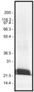 The recombinant protein is 22 kDa, consisting of the Rac1 protein plus a histidine tag in the amino-terminus.