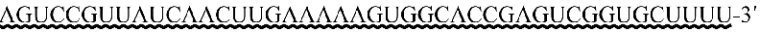 下劃線部分為 Target Sequence反向互補序列,波浪線部分為 SpCas9 sgRNA Scaffold 部分序列。