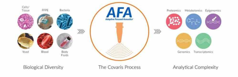 Covaris designed and engineered a patented acoustic-based technology platform dedicated to rapid, reproducible, and high-recovery pre-analytical sample preparation. The Covaris Adaptive Focused Acoustics (AFA) technology platform, which delivers AFA-energetics, addresses the bottleneck between initial sample collection and downstream analysis across a variety of sample types.